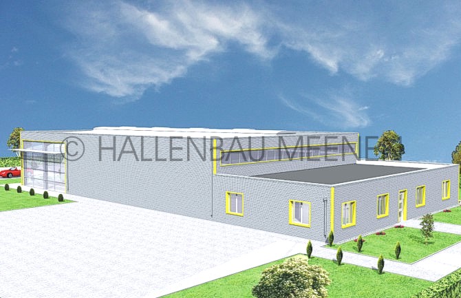 Als Ausstellungshalle mit Bürovorbau wurde diese Halle von uns geplant und gebaut.