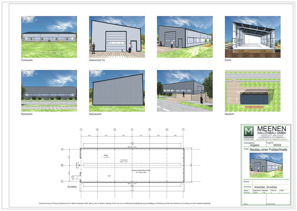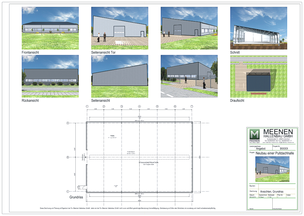 Bitte beachten: Planungsvorlagen sind Eigentum der Meenen Hallenbau GmbH